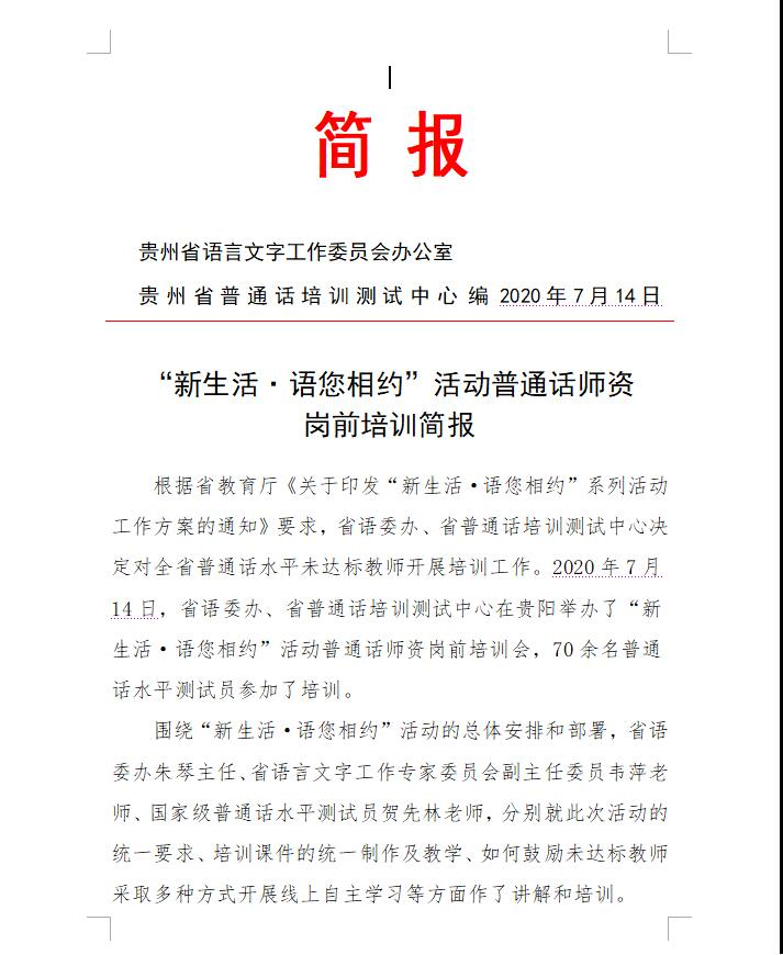 “新生活•语您相约”活动普通话师资 岗前培训简报